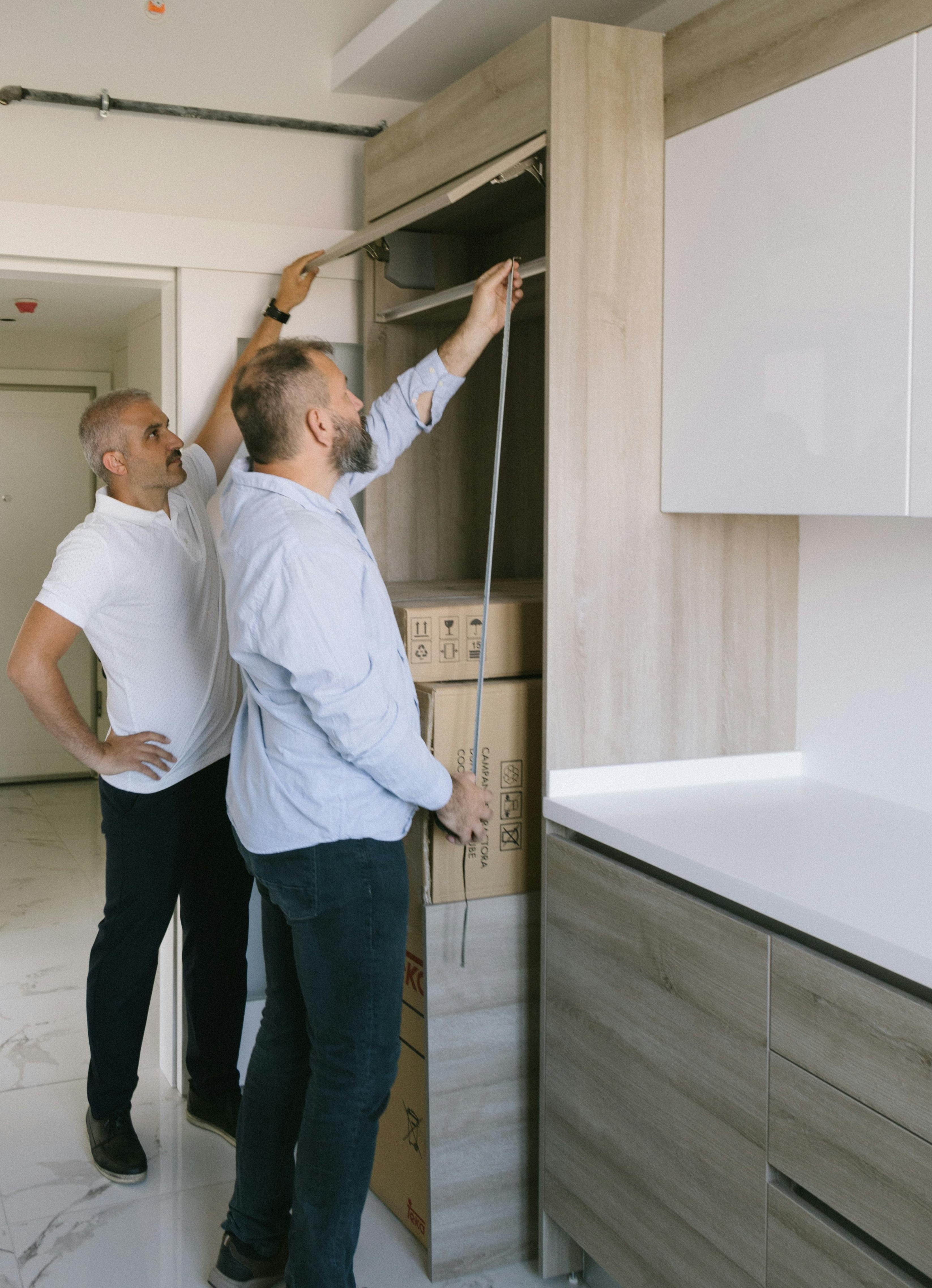 Wir montieren Möbelkorpusse sauber und stabil, richten sie exakt aus und befestigen sie sicher an der Wand.